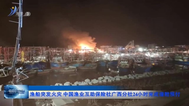 渔船突发火灾 中国渔业互助保险社广西分社24小时完成理赔预付